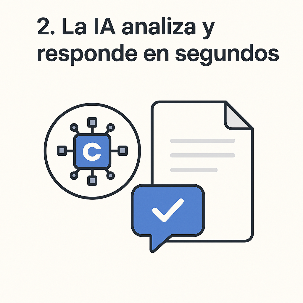Codexia procesa tu solicitud con inteligencia artificial entrenada en normativa colombiana. Recibirás respuestas claras, detección de riesgos o redacción de cláusulas.